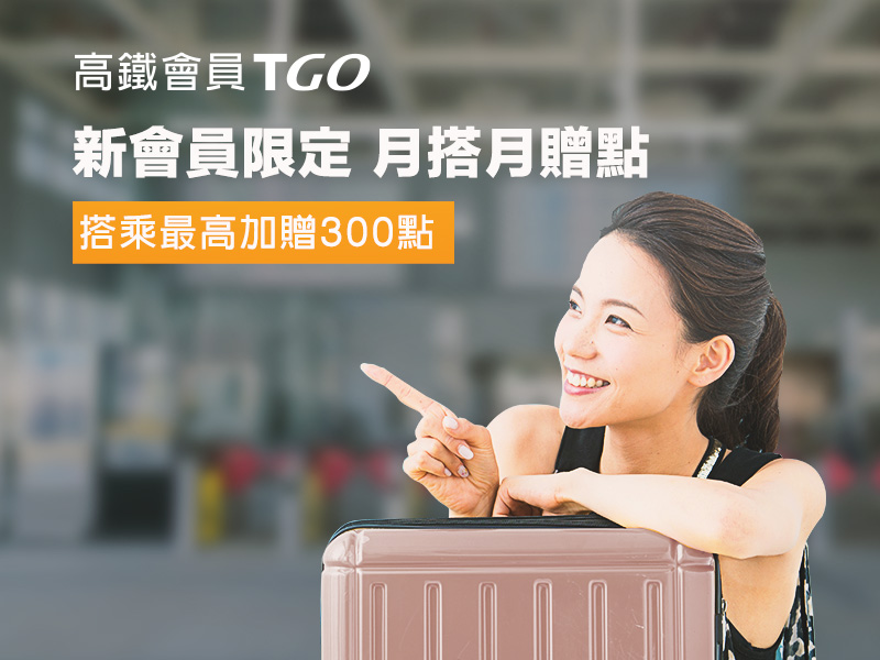 此外,台灣高鐵公司也針對尚未加入高鐵會員TGo的旅客,推出「新會員限定。月搭月贈點」活動, 12/31前新會員,於開通會員資格後的當月起算,每個月搭乘高鐵,就可以額外獲贈100點,若連續3個月都符合搭乘條件,最高可以獲得300點!加入會員手續簡便,只要年滿18歲,憑身分證字號及有效電子郵件信箱,填寫註冊資料並完成帳戶開通後,就能免費成為高鐵TGo會員。歡迎還沒成為TGo會員的旅客現在就加入,開始累積您的美好旅程,盡享會員專屬超值優惠。