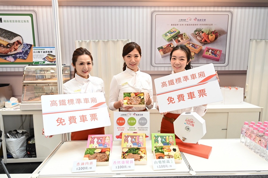 第7屆「鐵路便當節」今(11)日起至14日在臺鐵車站大廳一連舉辦4天,台灣高鐵公司攜手「高鐵便當」合作廠商—高雄空廚熱情參加,現場搶先曝光12月啟用的便當菜色及全新盒蓋設計,活動期間買便當贈送高鐵聯名便利貼,售價100元,還可以驚喜價買到「台灣高鐵與卡娜赫拉的小動物」系列聯名商品。同時,為推廣旅客搭乘高鐵時享用兼具新鮮、美味的「高鐵便當」,憑高鐵攤位當日發票累計滿300元,即可抽獎1次,有機會將高鐵免費乘車票兌換券、高鐵聯名紀念品帶回家,獎品內容豐富,歡迎把握機會參觀搶購。