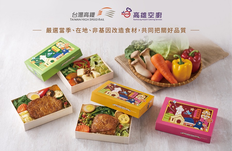 「高鐵便當」主菜延續旅客最喜愛的「香滷肉排」、「香烤雞腿排」及「山藥鮮蔬(素食)」三種口味,無論是衛生、美味與品質都經過層層嚴格把關,因應冬令季節調整,將南投大豆苗、櫛瓜、碧玉筍及屏東皇帝豆新鮮入菜,以少油川燙、蒸煮調理,保留當季時蔬的原貌風味,而山藥鮮蔬(素食)搭配的米飯加入產於台東的穀物界「紅寶石」紅蔾,展現台灣高鐵公司對台灣本土農業的支持。合作廠商高雄空廚具備航空餐點豐富服務經驗,更通過ISO 22000及HACCP的食品安全認證,讓旅客能夠享用航空餐等級美味及食用安全。本次推出的新版盒蓋,以繽紛撞色的設計帶出現代感,更請來台灣黑熊化身導遊,拿著歡迎旗、拉起行李箱,踏著輕快的步伐,帶領旅客前往各處景點「搭高鐵・遊台灣」。