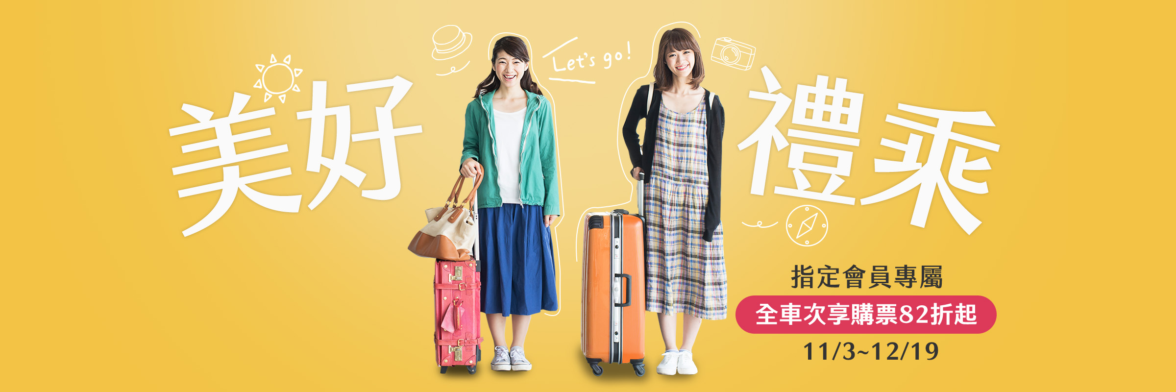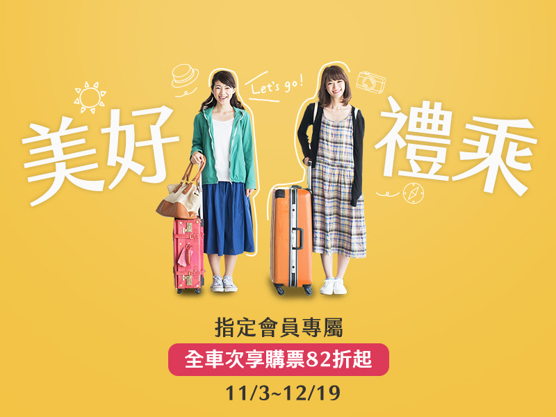 - 本專案限於高鐵會員TGo「兌換專區」購買「美好禮乘 指定會員專屬」優惠方案,即可享標準車廂對號座購票折抵優惠,活動期間每人限換購2張,資格恕無法轉讓。