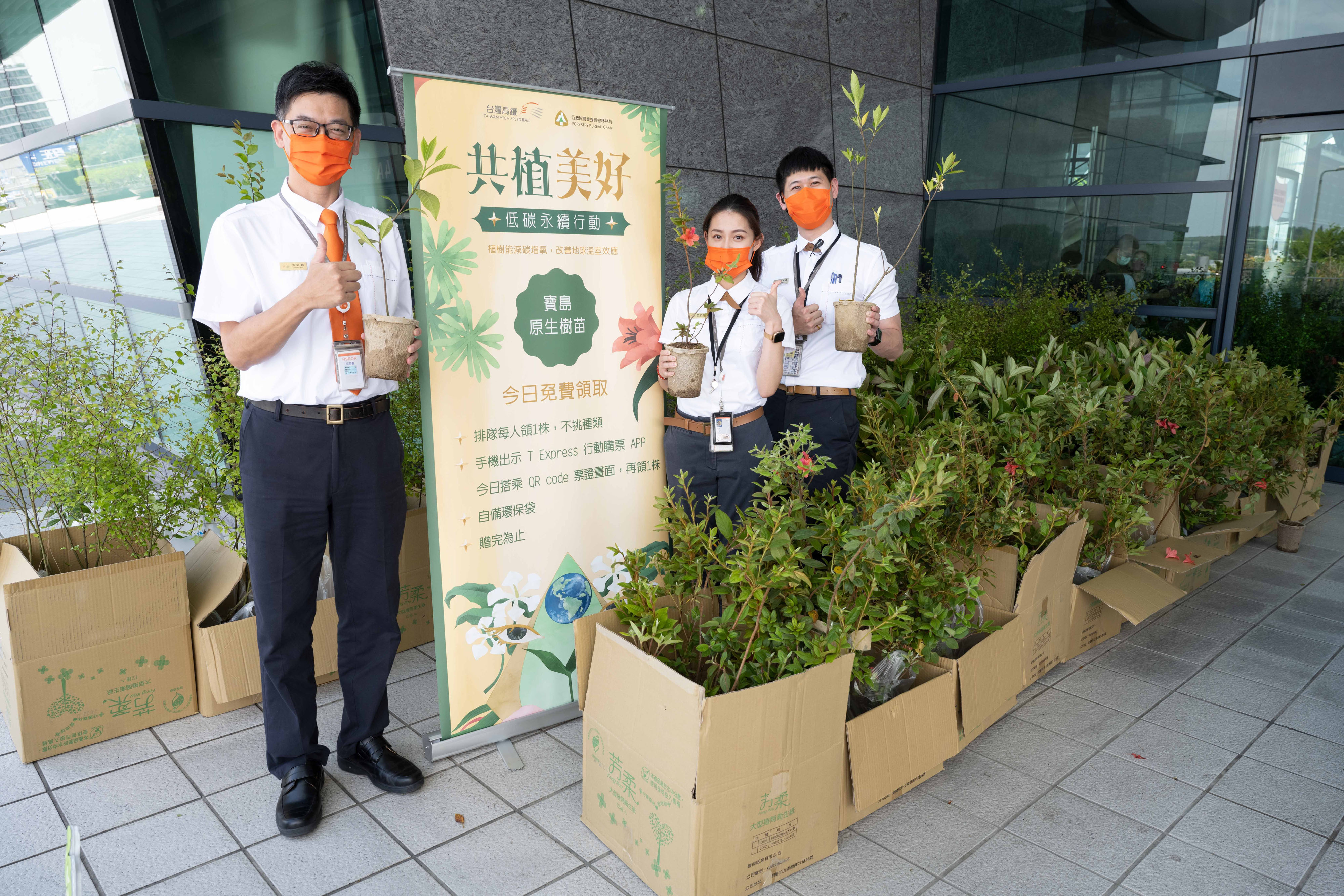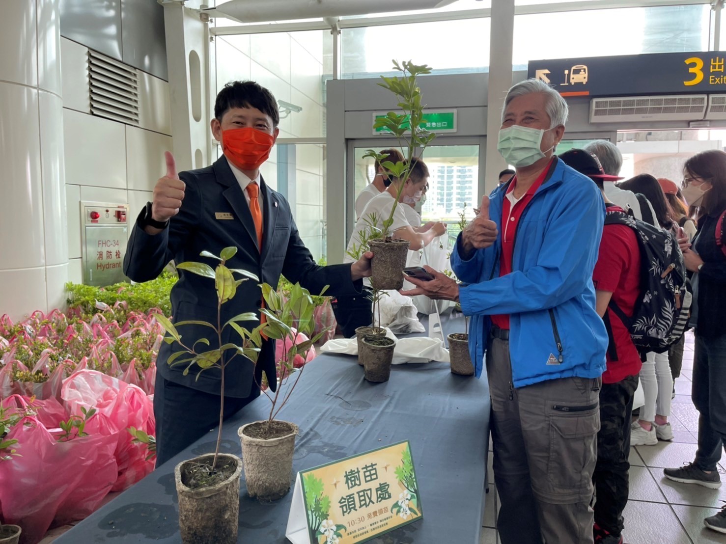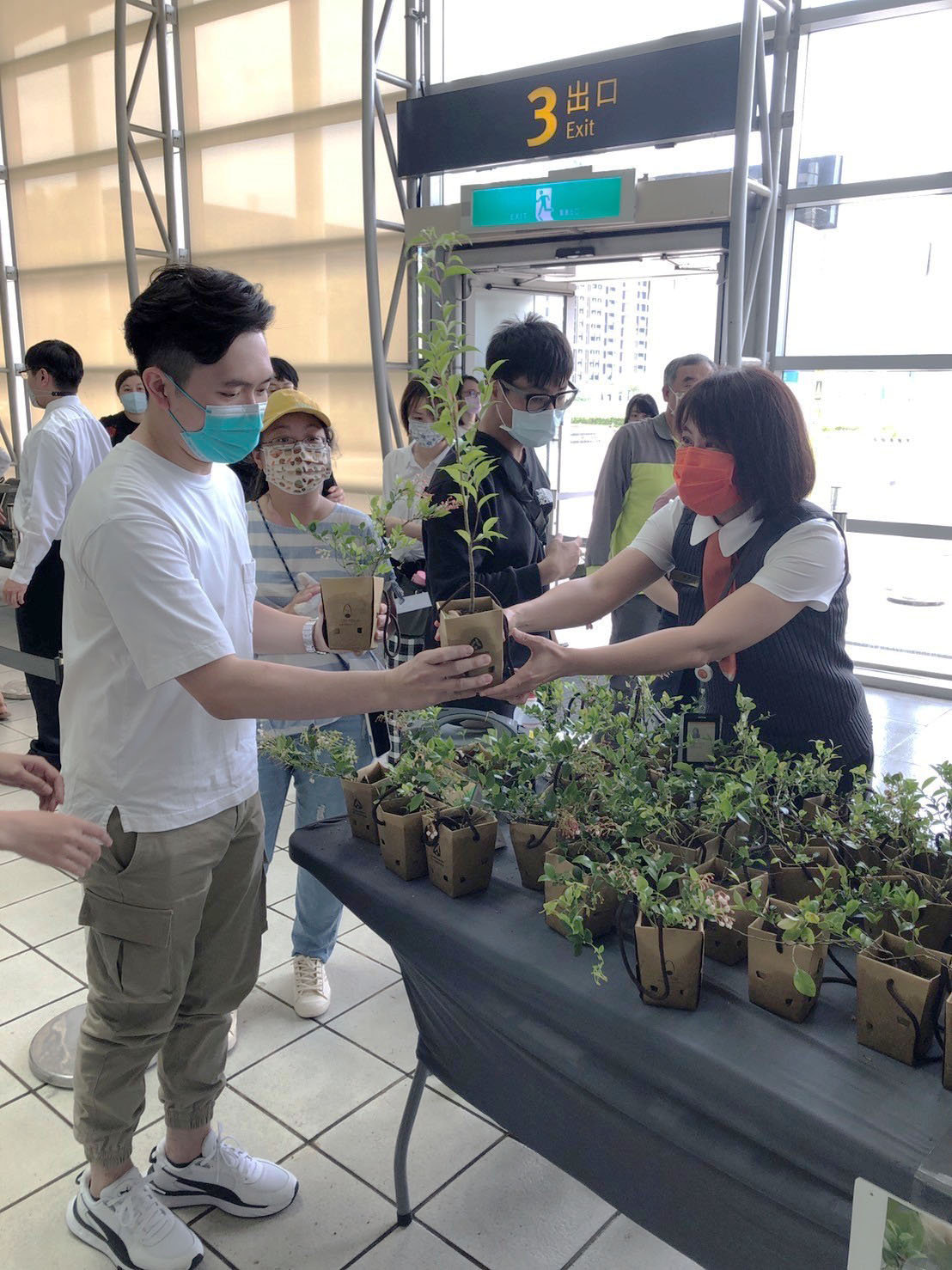 今(22)日桃園、台中、左營站各送出1,200株寶島原生樹苗,民眾反應踴躍。桃園站發送的樹苗包括:萊特氏越橘、鳳凰山茶、鐵冬青、桃金孃;台中站為野牡丹藤、山黃梔、金毛杜鵑、燈稱花;左營站則是桃金孃、金門赤楠、蘭嶼羅漢松、鵝掌藤。樹苗均使用環保可分解的紙漿育苗盆盛裝,以純回收紙漿纖維製成,旅客可將育苗盆連同樹苗放到未來要放置的大盆裡面,環保又方便。期待在不久的將來,這些小樹苗都能在台灣的土地上成長茁壯,枝繁葉茂。