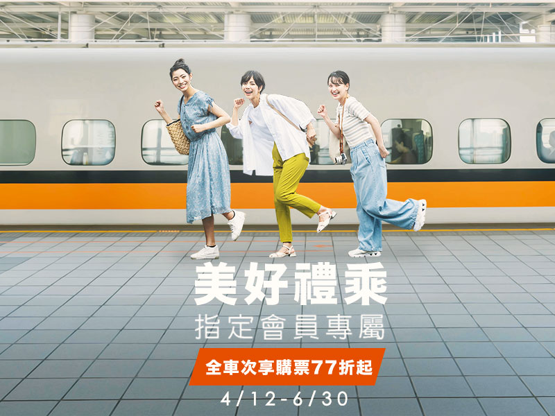 | 美好禮乘 指定會員專屬 | 指定會員6/30前登入TGo會員帳戶,可隨機獲得2次標準車廂對號座購票77折、82折或88折不等的驚喜優惠。 |
