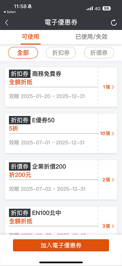 點選「加入電子優惠券」